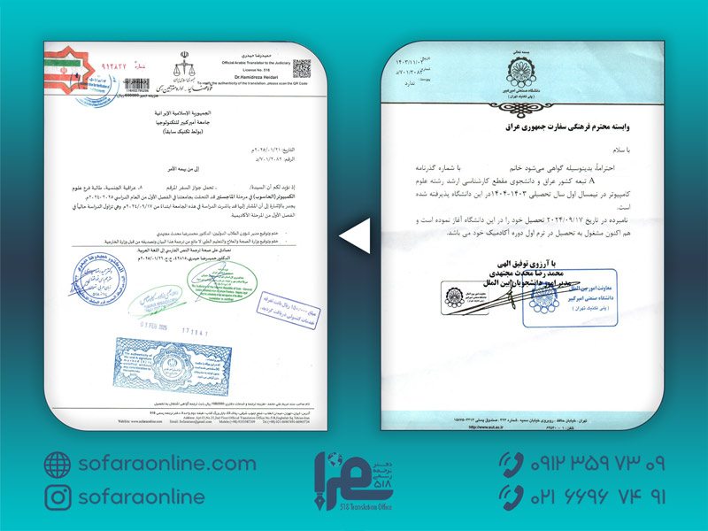 دارالترجمه رسمی سفرا 518 روزانه پذیرای شمار زیادی از مشتریان و مراجعین حضوری و سفارش دهندگان غیر حضوری از تهران و اقصا نقاط کشور است. هموطنان با اطمینان کامل به خدمات دارالترجمه سفرا و صحت ترجمه مترجمان زبردست، سفارشات اولیه خود را به صورت حضوری یا آنلاین ثبت و در کوتاه ترین مدت و پس از تاییدات دادگستری و خارجه از دارالترجمه تحویل می گیرند.