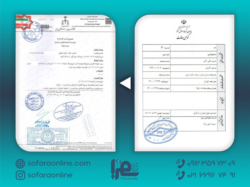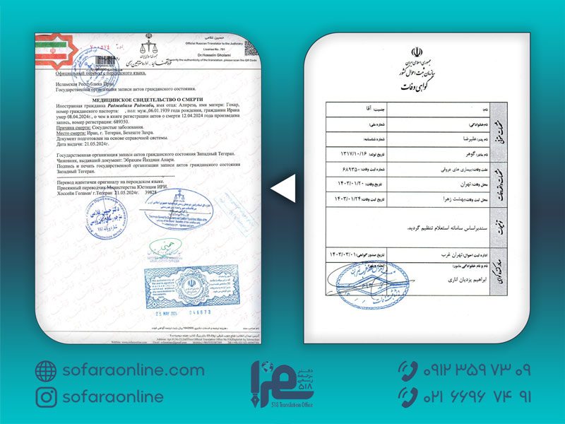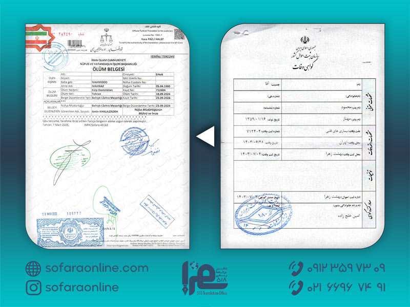 اگر به دنبال ترجمه رسمی گواهی فوت خود با دقت و سرعت هستید، خدمات ترجمه سفرا میتواند گزینهای مطمئن و کارآمد باشد. تیم متخصص ما آماده است تا با ارائه ترجمهای دقیق و قانونی، فرایندهای مهاجرتی و حقوقی شما را تسهیل کند.