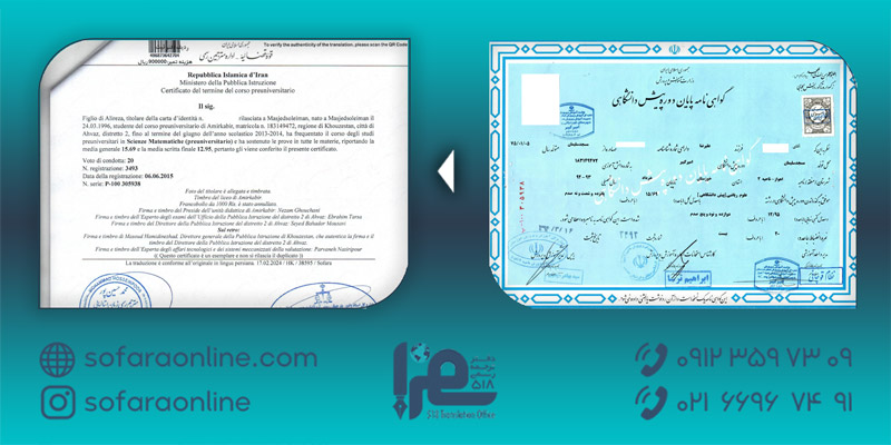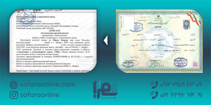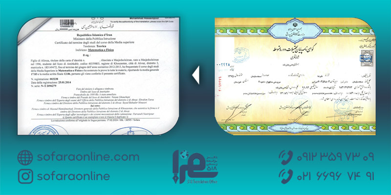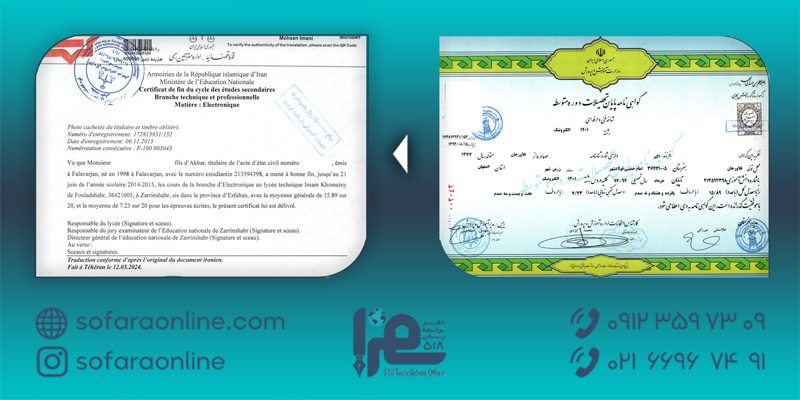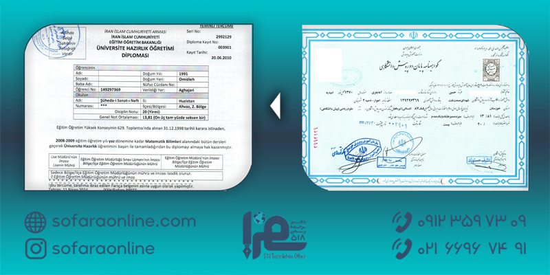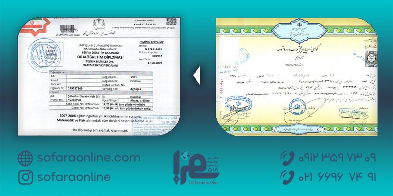 برای ترجمه رسمی مدرک دیپلم و پیش دانشگاهی علاوه بر مهر مدرسه و اداره امتحانات و اداره منطقه یا شهرستان که روی هر مدرک دیپلم و پیش دانشگاهی قابل مشاهده است میبایست حتماً اداره کل آموزش و پرورش استان محل تحصیل نیز پشت مدرک را تایید کند و سپس در سامانه استعلام مدارک تحصیلی آموزش و پرورش نیز استعلام آن اخذ گردد. دارالترجمه رسمی سفرا میتواند استعلام مدارک تحصیلی شما را از طریق سامانه درخواست نماید.