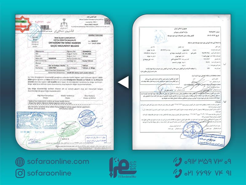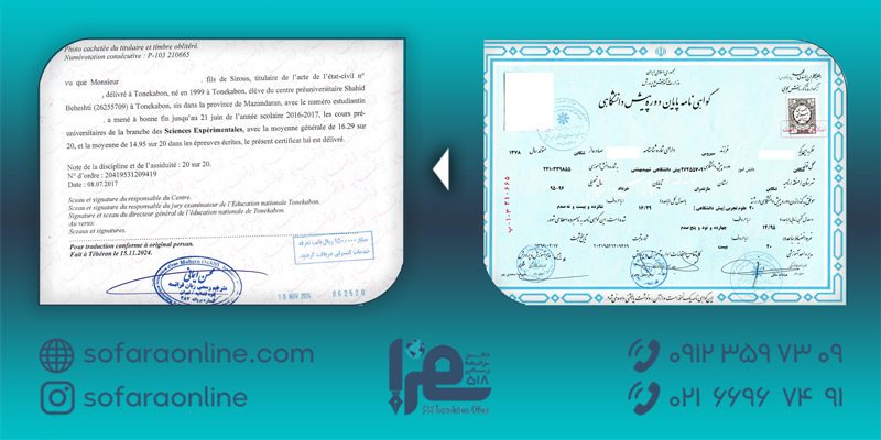 ترجمه رسمی مدارک تحصیلی دیپلم و پیشدانشگاهی به طور خاص برای ارائه به نهادهای دولتی، دانشگاهها و سازمانهای بینالمللی اهمیت دارد. یک ترجمه رسمی و معتبر، پذیرش این مدارک را تضمین میکند تا یک قدم به هدف نهاییتان نزدیکتر شوید. در همین راستا دارالترجمه رسمی سفرا با همکاری تیمی متشکل از مترجمان رسمی قوه قضاییه همراه شماست تا ترجمههای دقیق و مطابق با شرایط قانونی کشورهای مقصد را ارائه بدهید.