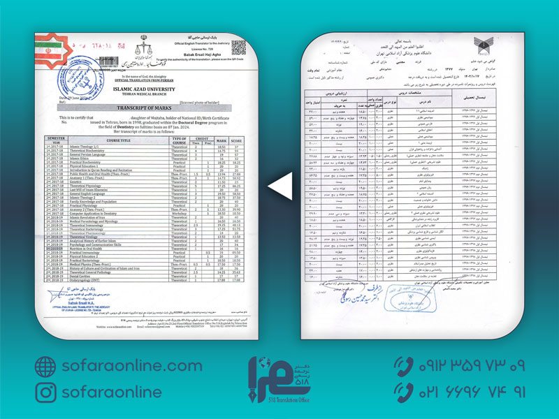 ریز نمرات صادره از دانشگاههای آزاد سراسر کشور علاوه بر این که باید از سوی دانشگاه محل تحصیل مهر زده شود میبایست توسط سازمان مرکزی دانشگاه آزاد اسلامی در تهران (پونک) نیز مهر زده شود. در غیر این صورت قابل ترجمه رسمی و تایید در دادگستری و امور خارجه نیست. علاوه بر این پس از ممهور شدن ریز نمرات از سوی سازمان مرکزی دانشگاه آزاد اسلامی میبایست در سامانه استعلام مدارک تحصیلی دانشگاه آزاد نیز درخواست استعلام شود. دارالترجمه رسمی سفرا ۵۱۸ نیز میتواند استعلامات سامانه ای شما را اخذ کند.